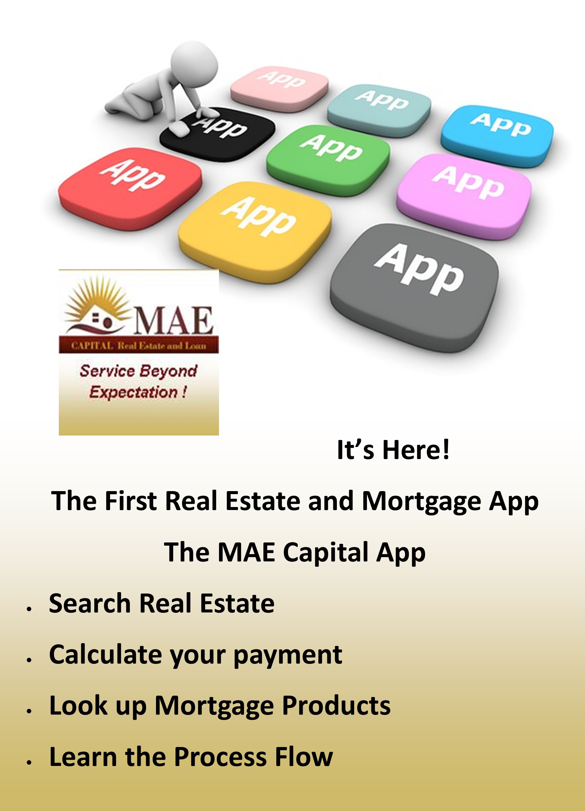 If you have been thinking about buying Real Estate or Selling Real Estate you need this App. Or if you just like to look at Real Estate and wonder how much homes are listed for get this App. Get all the power in the palm of your hand and save thousands when working with MAE Capital as we will bundle the services to save you thousands. Which means we will take some to the Real Estate commission that is generated in the transaction and apply it towards your home loan to lower your interest rates and lower your monthly payments. MAE Capital Real Estate and Loan is your true partner giving you the tools and the information to be cutting edge in the Real Estate game. Click here to Download the App from the Apple store and click here to Download the App from Google Play the android solution.